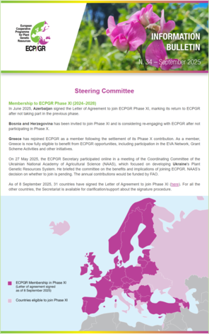 This electronic (email) bulletin is prepared by the ECPGR Secretariat to the attention of the National Coordinators, to provide regular updates on its activities and relevant developments in ECPGR.